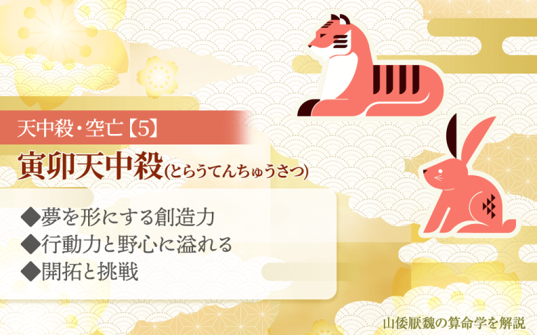 寅卯天中殺(空亡)とは? 寅卯天中殺(とらうてんちゅうさつ)は、十二支の「寅」と「卯」を天中殺に持つ宿命群で、「東方=春」を司る位置にあたります。 春は“始まり・成長・発展”を象徴する季節であり、この天中殺を持つ人は、常 … 続きを読む 寅卯天中殺・空亡とは何か?期間や気をつけることと性格/仕事/恋愛/相性